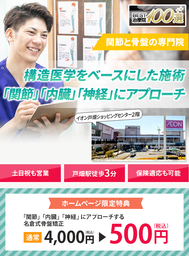 \ 名倉式骨盤矯正 通常4,000円〜 /
